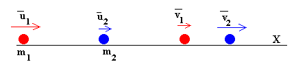 Posteriormente chocan las dos partículas con velocidades iniciales u1=ev0 y u2=-v0