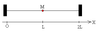 Consideremos una cuerda homogénea de longitud 2L y masa 2m con una masa puntual M situada en la posición x=L, tal como se muestra en la figura.